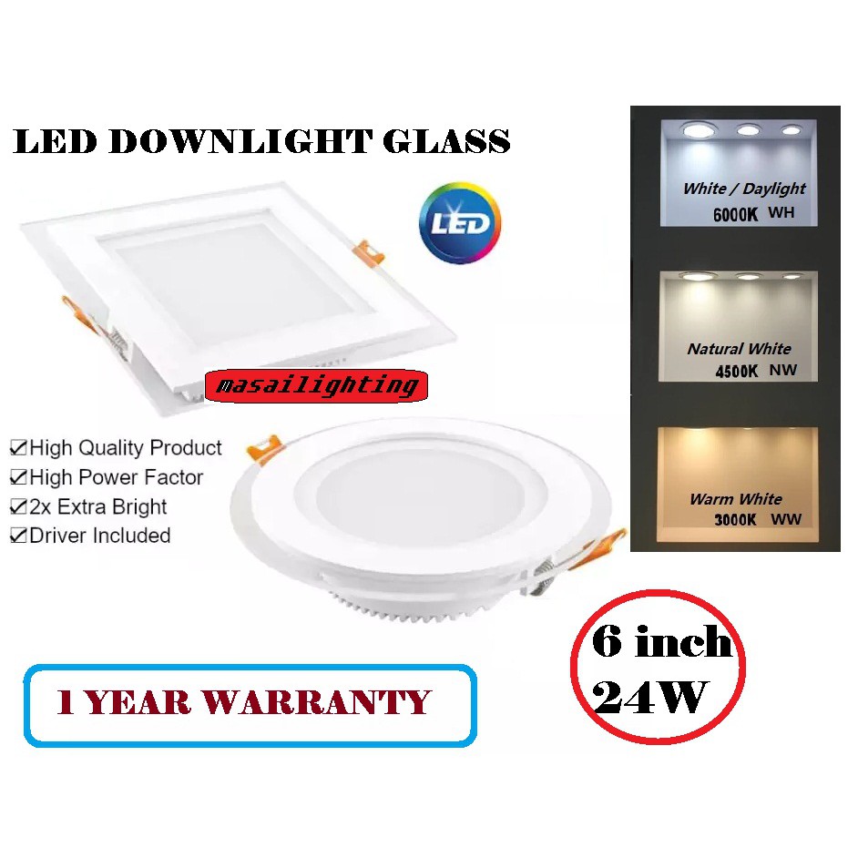 6inch 24w Glass Led Downlight Led Down Light Round Square Shopee Malaysia